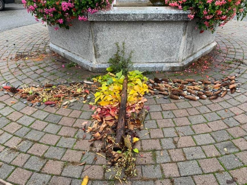 Entre nature, contes et légendes des Hautes-Alpes, une quinzaine d’enfants accompagnés de leur parents ont bravé la pluie pour s’initier à la technique du land art, et confectionner une œuvre collective autour de la fontaine du village.
